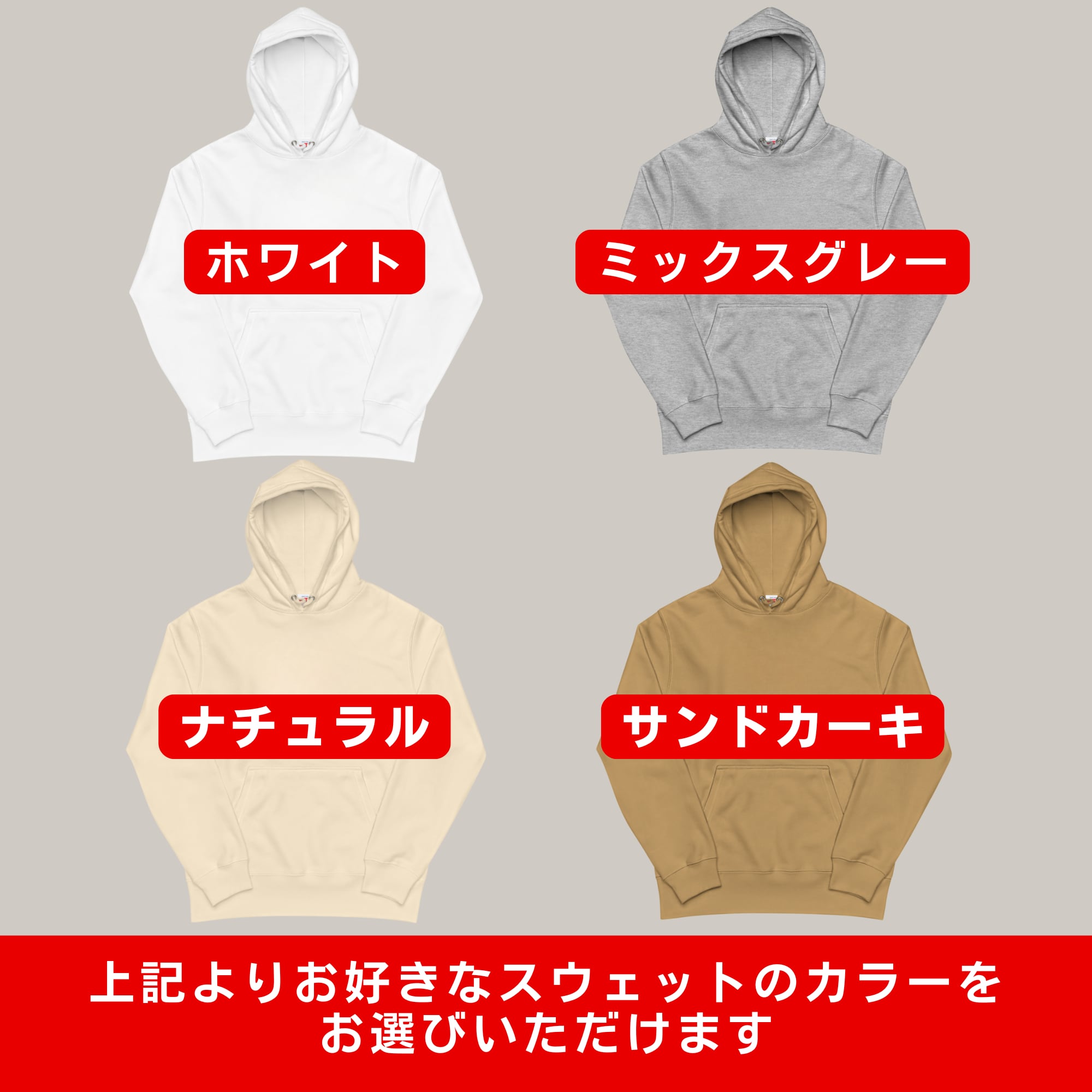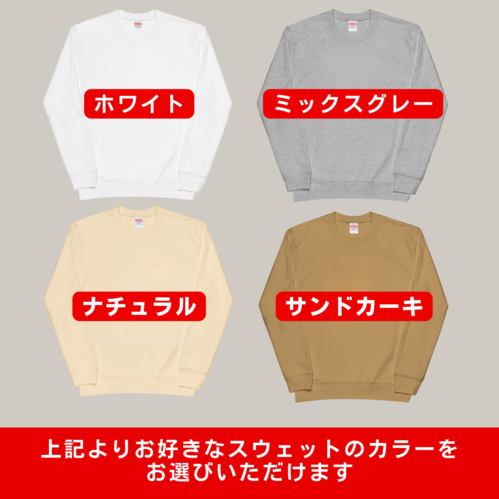 ※お好みのデザインテイスト、スウェット・パーカの色をお選びいただけます。